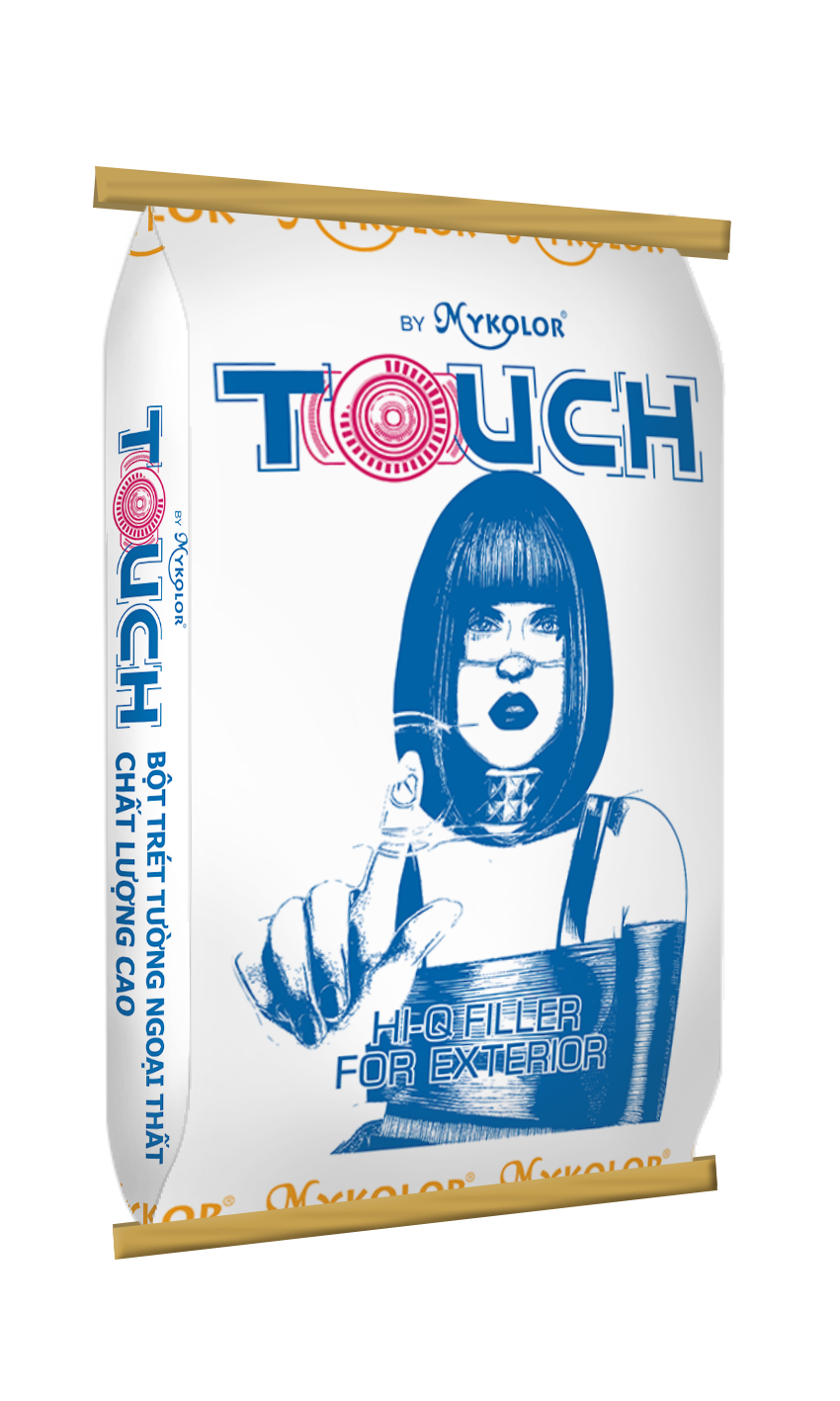 MYKOLOR TOUCH HI-Q FILLER FOR EXTERIOR – BỘT TRÉT TƯỜNG NGOẠI THẤT CHẤT LƯỢNG CAO dùng để lấp các lỗ hổng và làm phẳng các bề mặt hồ vữa hay bê tông trước khi sơn lót. Loại này dễ sử dụng, dẻo, mịn, kéo nhẹ tay nên trét được nhiều mét vuông. Tăng tính thẩm mỹ cho lớp sơn hoàn chỉnh. Thích hợp cho các loại sơn mang nhãn hiệu MYKOLOR TOUCH.