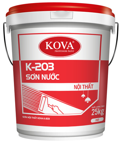 Mô tả : Sơn nội thất KOVA K-203 là sơn hệ Styren Acrylic phủ trong nhà với bề mặt mịn đẹp, đã hoàn toàn nhiệt đới hóa, rất phù hợp với khí hậu nóng ẩm của Việt Nam. Phù hợp với nhiều loại bề mặt của tất cả các công trình xây dựng dân dụng và công nghiệp.